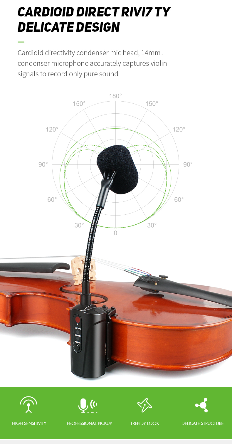 UHF Wireless Violin Microphone System for Violinist Playing Stage Performance